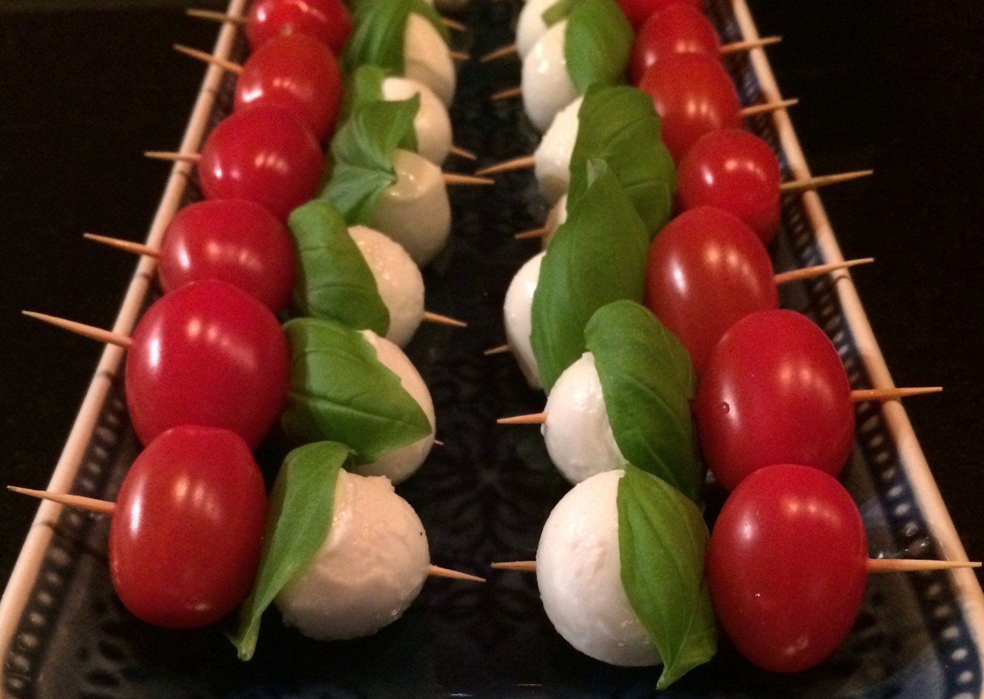 hoofdingrediënten: tomaat, vers geplukte basilicum en mozzarella hier