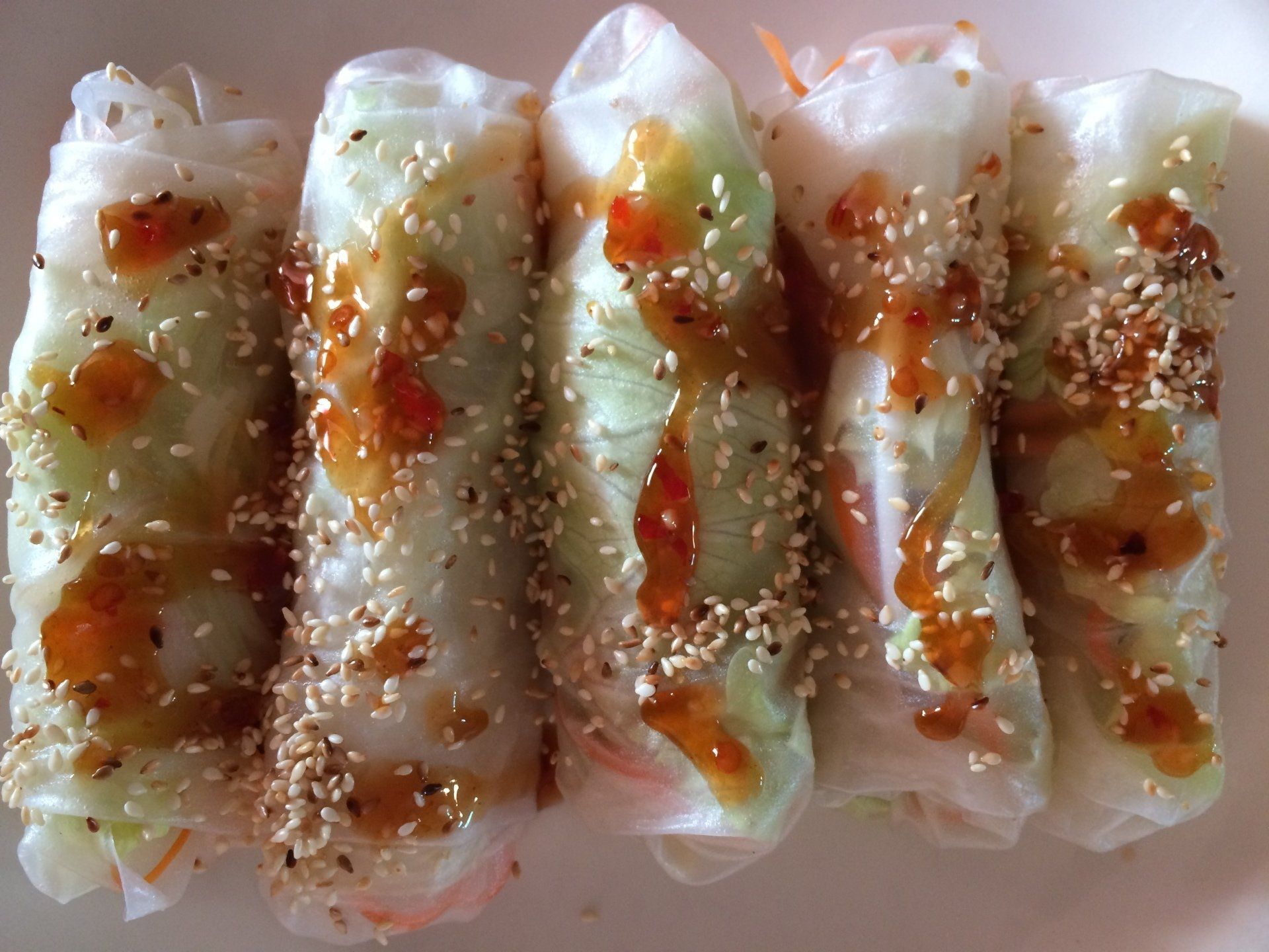 hoofdingrediënten: rijstvel, mie, taugé, wortel, lente-ui en komkommer